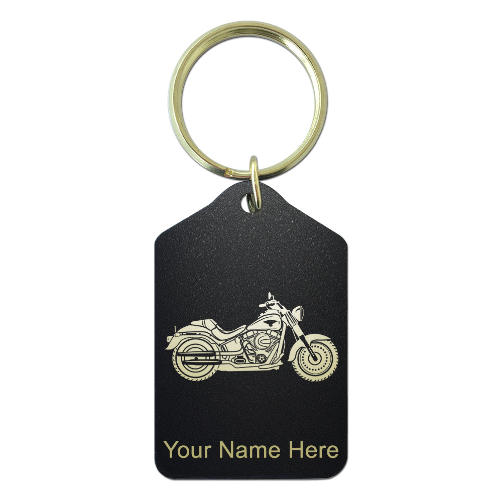 Black Metal Keychain, Motorcycle, Personalized Engraving Included