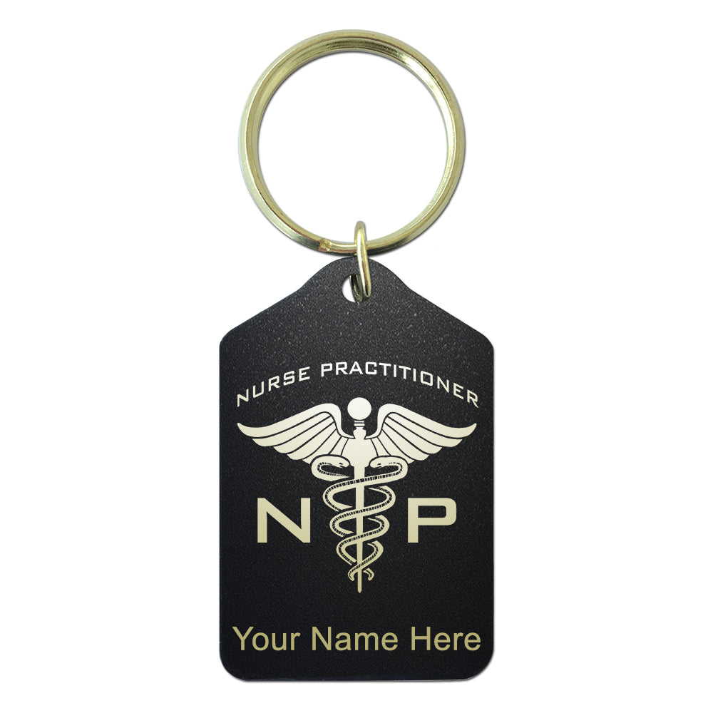 Black Metal Keychain, NP Nurse Practitioner, Personalized Engraving Included