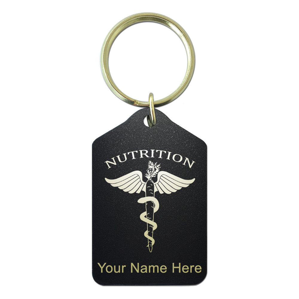 Black Metal Keychain, Nutritionist, Personalized Engraving Included