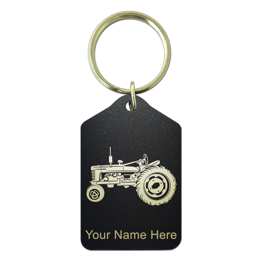 Black Metal Keychain, Old Farm Tractor, Personalized Engraving Included