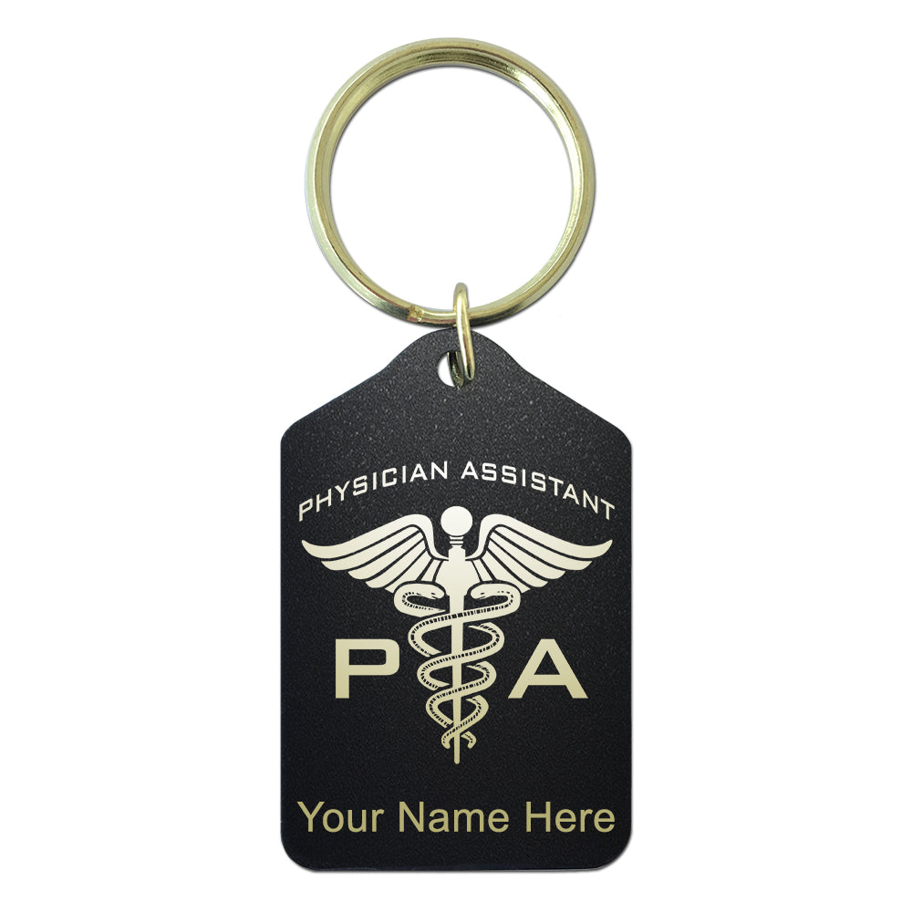 Black Metal Keychain, PA Physician Assistant, Personalized Engraving Included