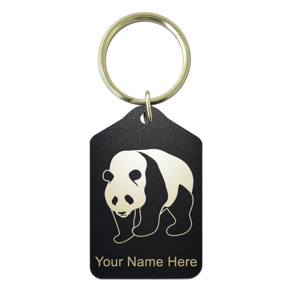 Black Metal Keychain, Panda Bear, Personalized Engraving Included