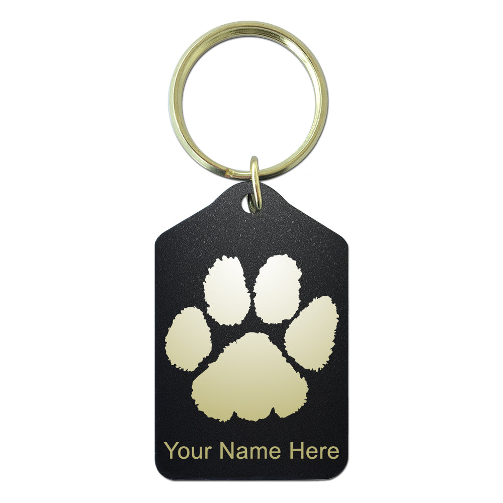 Black Metal Keychain, Paw Print, Personalized Engraving Included