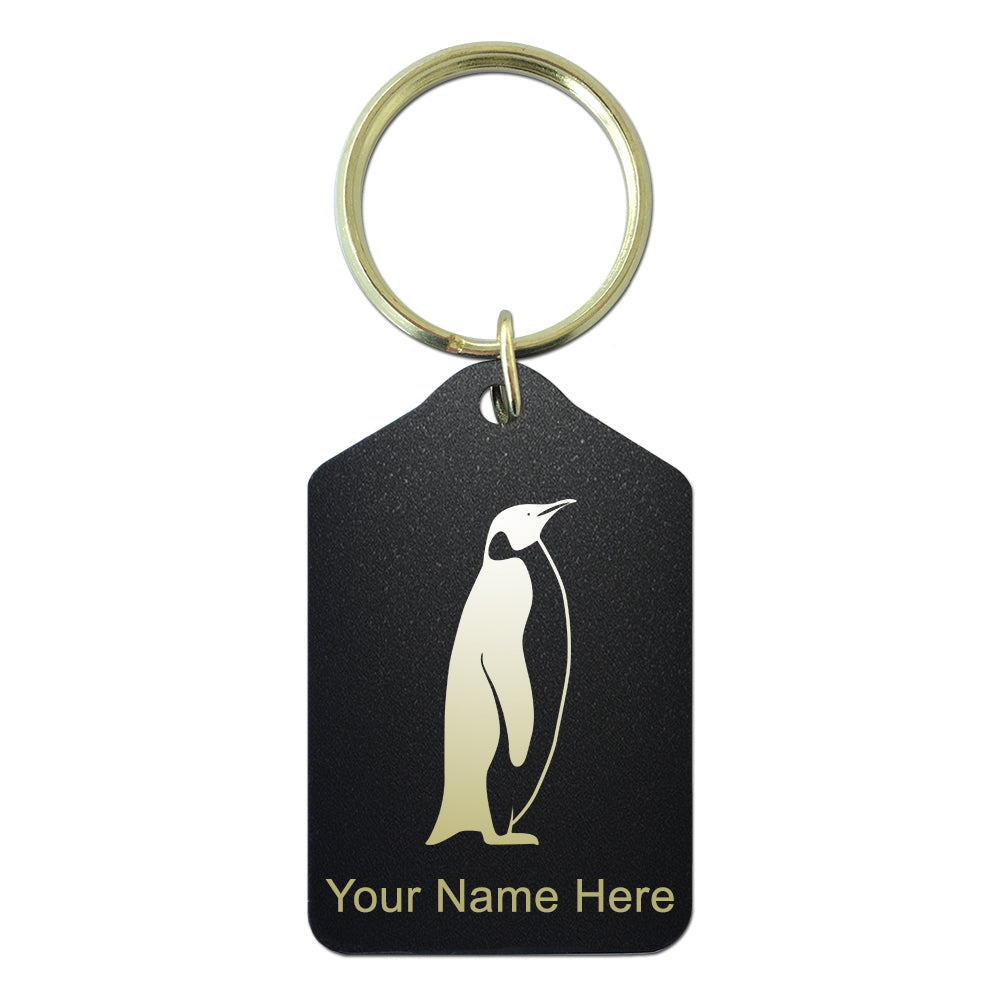 Black Metal Keychain, Penguin, Personalized Engraving Included