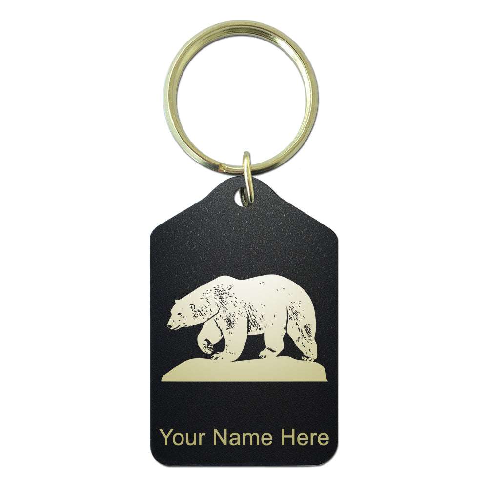 Black Metal Keychain, Polar Bear, Personalized Engraving Included