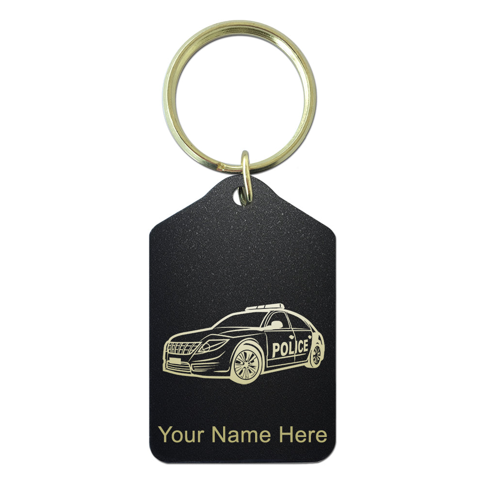 Black Metal Keychain, Police Car, Personalized Engraving Included