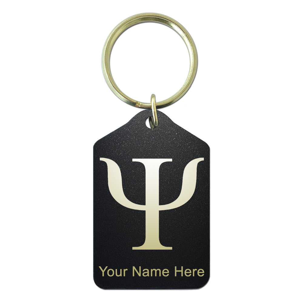 Black Metal Keychain, Psi Symbol, Personalized Engraving Included