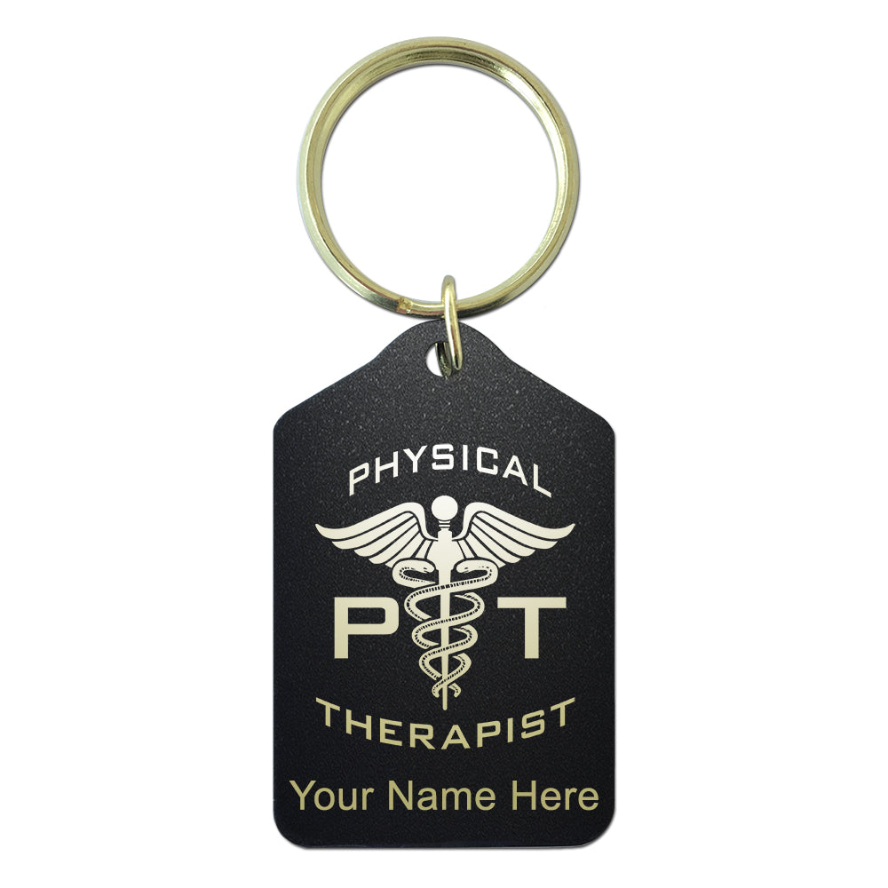Black Metal Keychain, PT Physical Therapist, Personalized Engraving Included