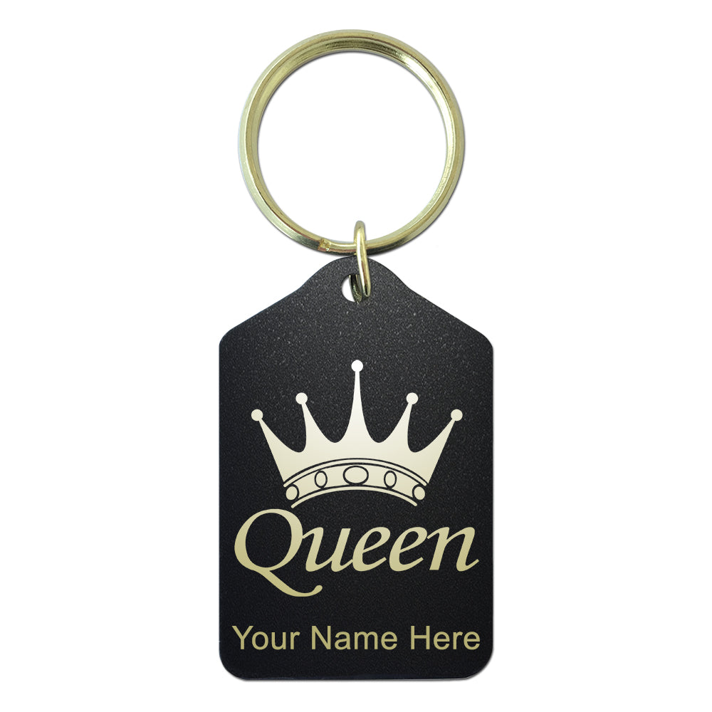 Black Metal Keychain, Queen Crown, Personalized Engraving Included