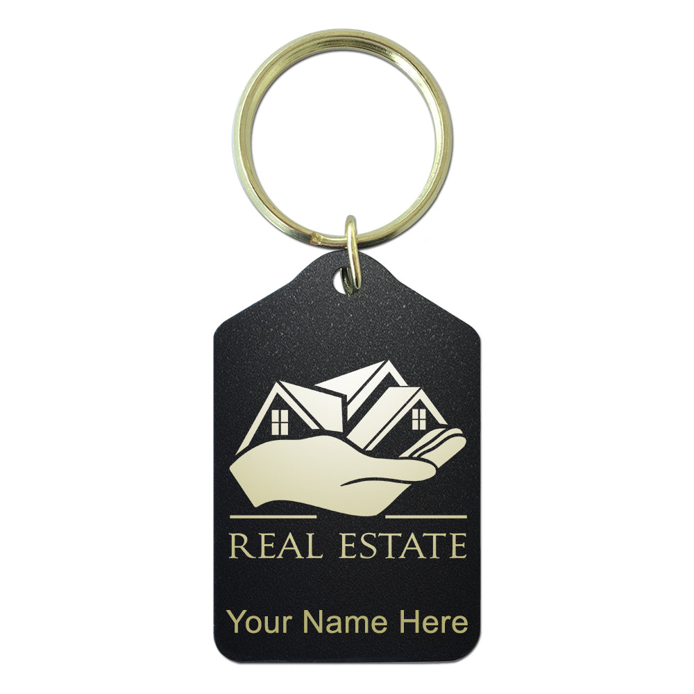 Black Metal Keychain, Real Estate, Personalized Engraving Included