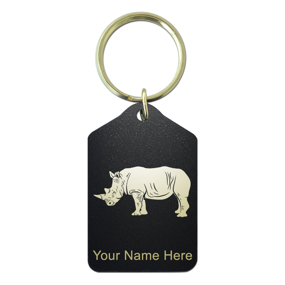 Black Metal Keychain, Rhinoceros, Personalized Engraving Included