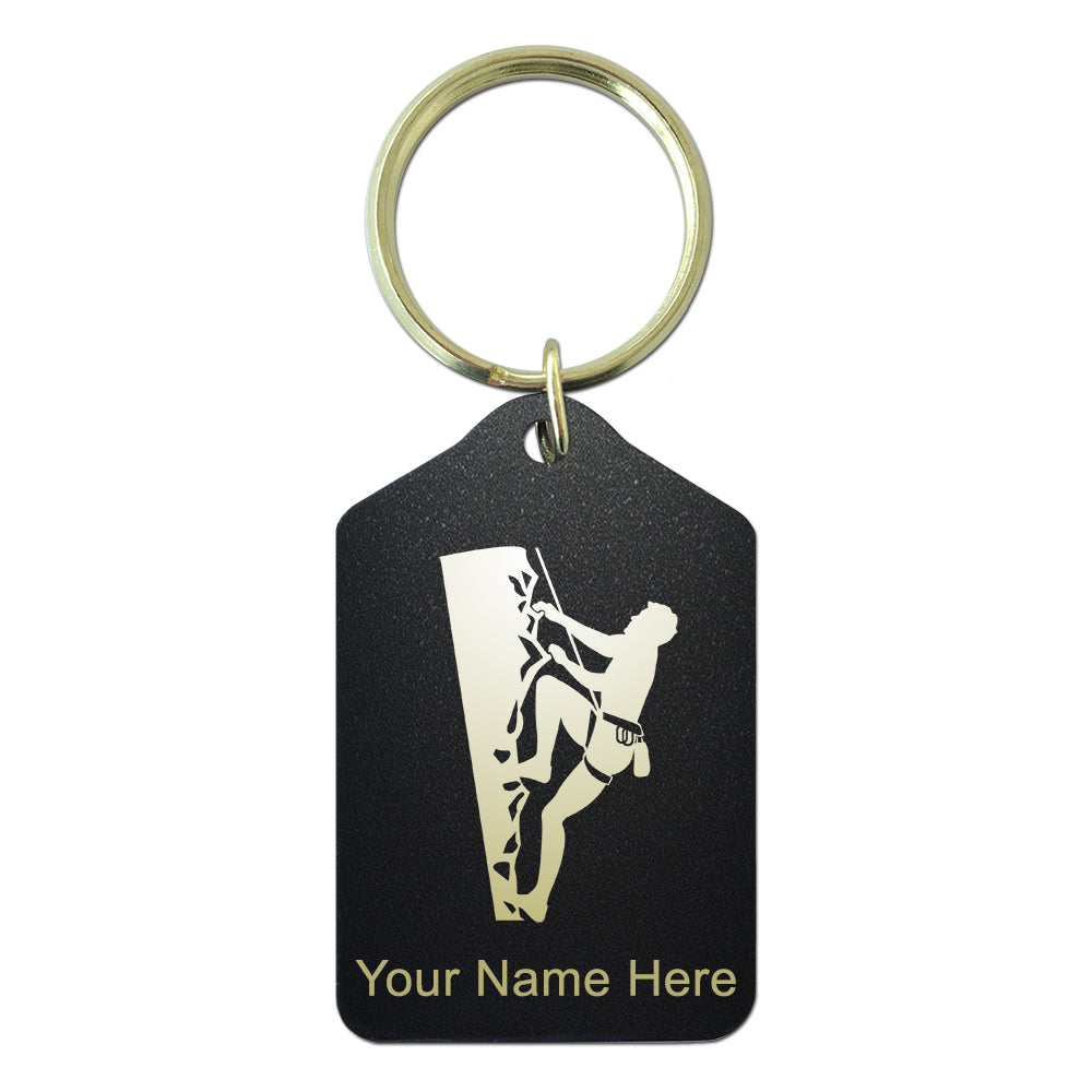 Black Metal Keychain, Rock Climber, Personalized Engraving Included