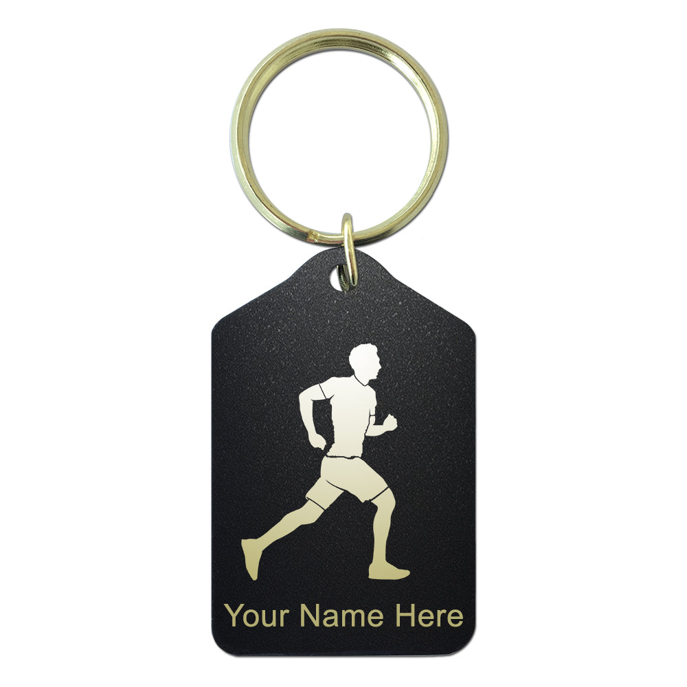 Black Metal Keychain, Running Man, Personalized Engraving Included