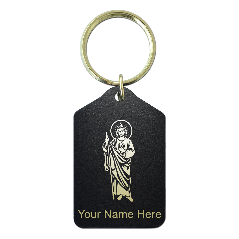 Black Metal Keychain, Saint Jude, Personalized Engraving Included