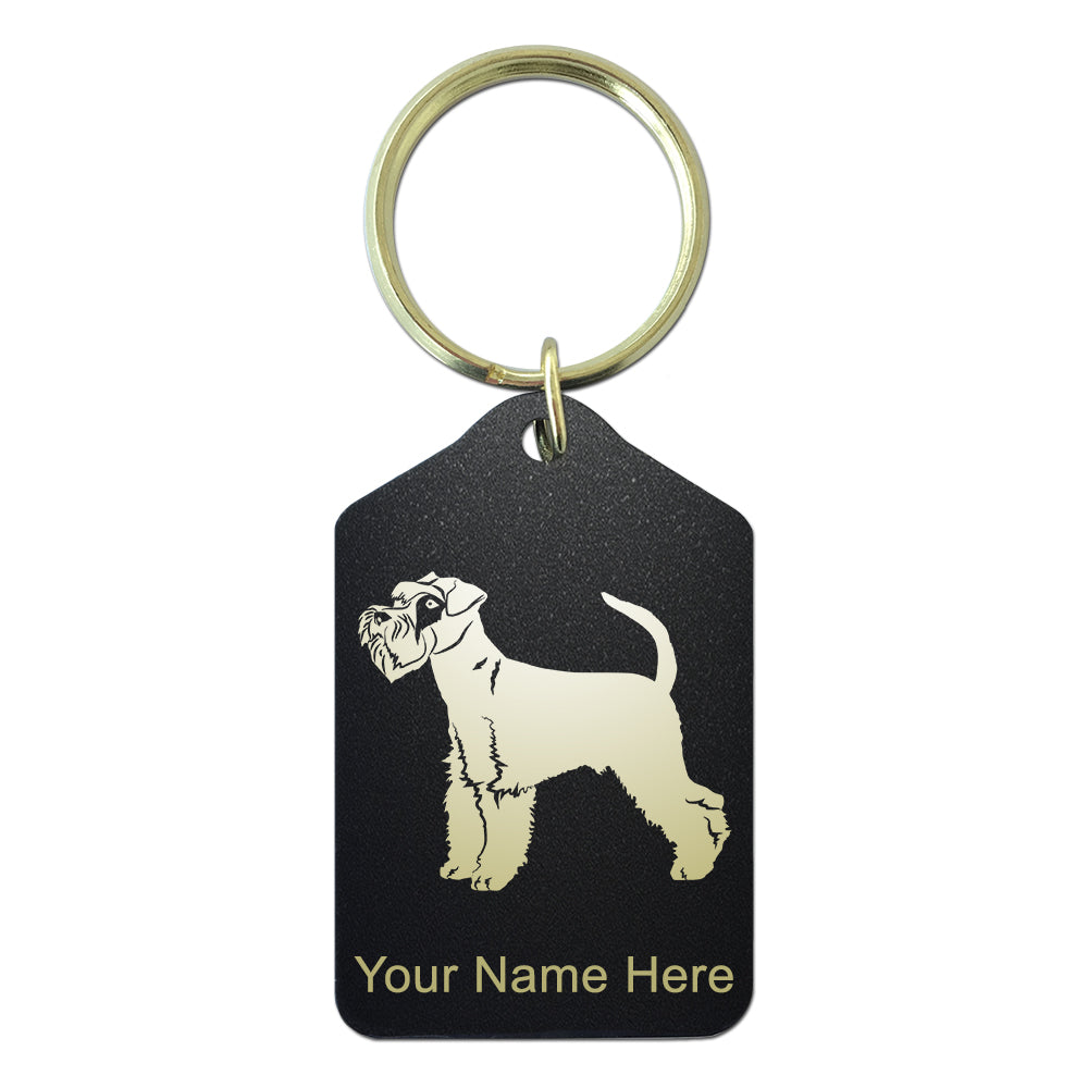 Black Metal Keychain, Schnauzer Dog, Personalized Engraving Included
