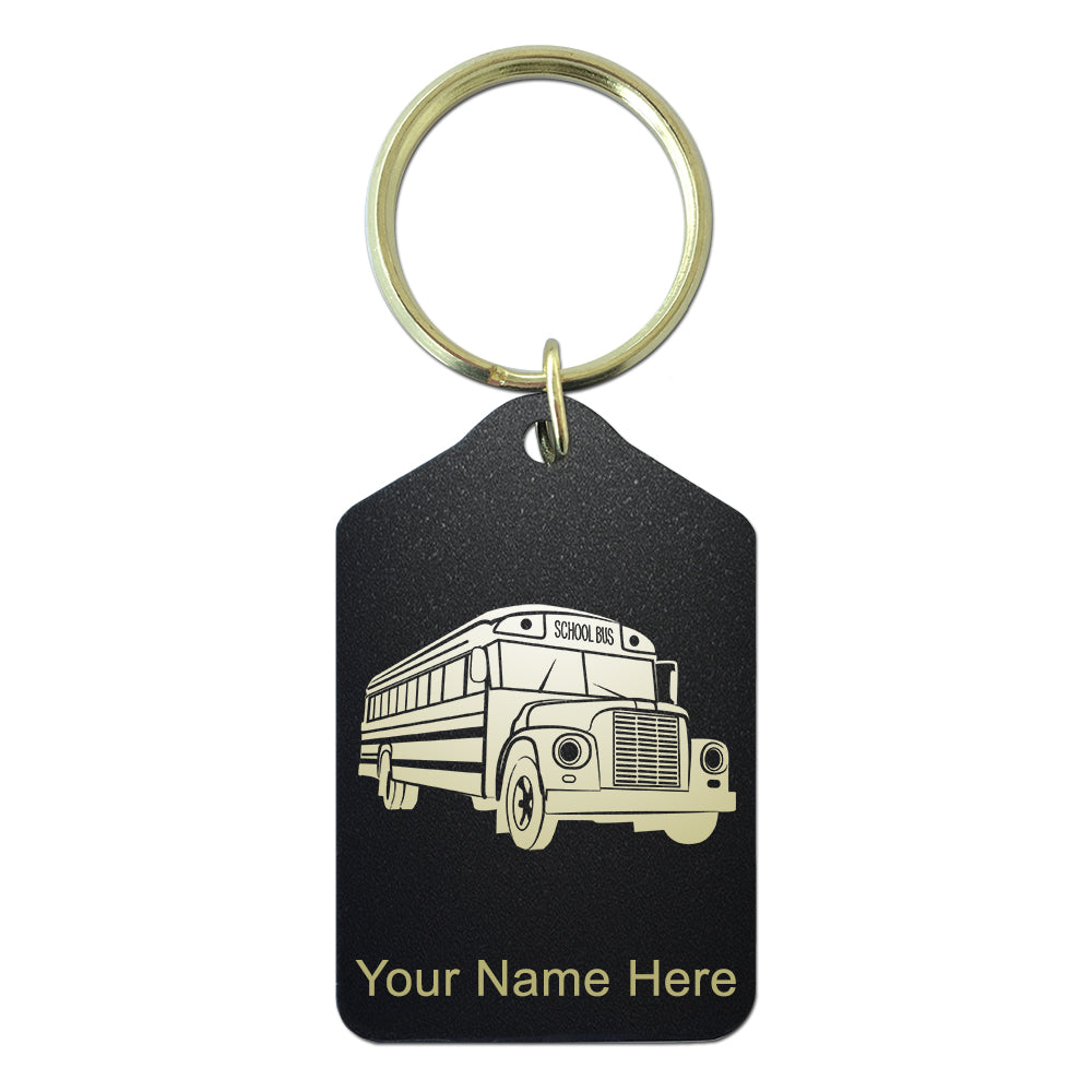 Black Metal Keychain, School Bus, Personalized Engraving Included