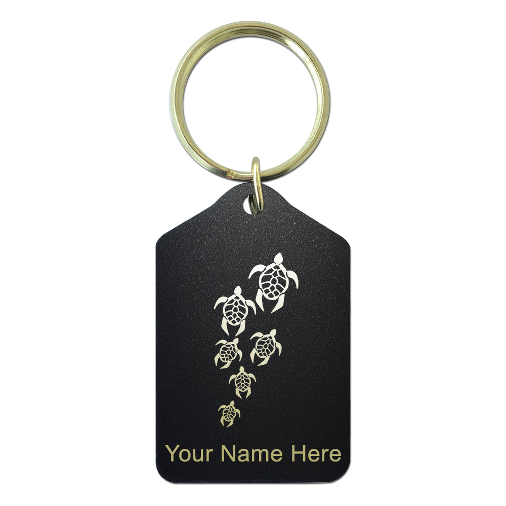 Black Metal Keychain, Sea Turtle Family, Personalized Engraving Included