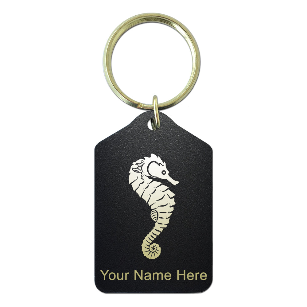 Black Metal Keychain, Seahorse, Personalized Engraving Included