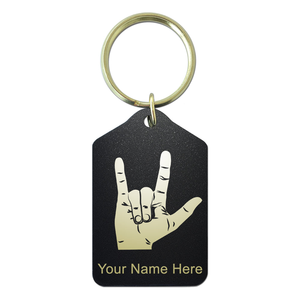 Black Metal Keychain, Sign Language I Love You, Personalized Engraving Included