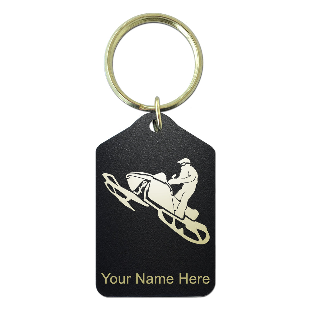 Black Metal Keychain, Snowmobile, Personalized Engraving Included
