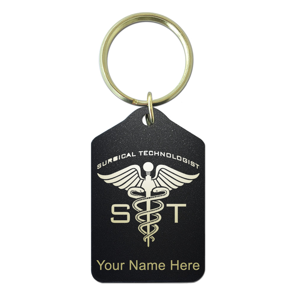 Black Metal Keychain, ST Surgical Technologist, Personalized Engraving Included