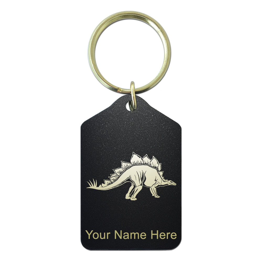 Black Metal Keychain, Stegosaurus Dinosaur, Personalized Engraving Included
