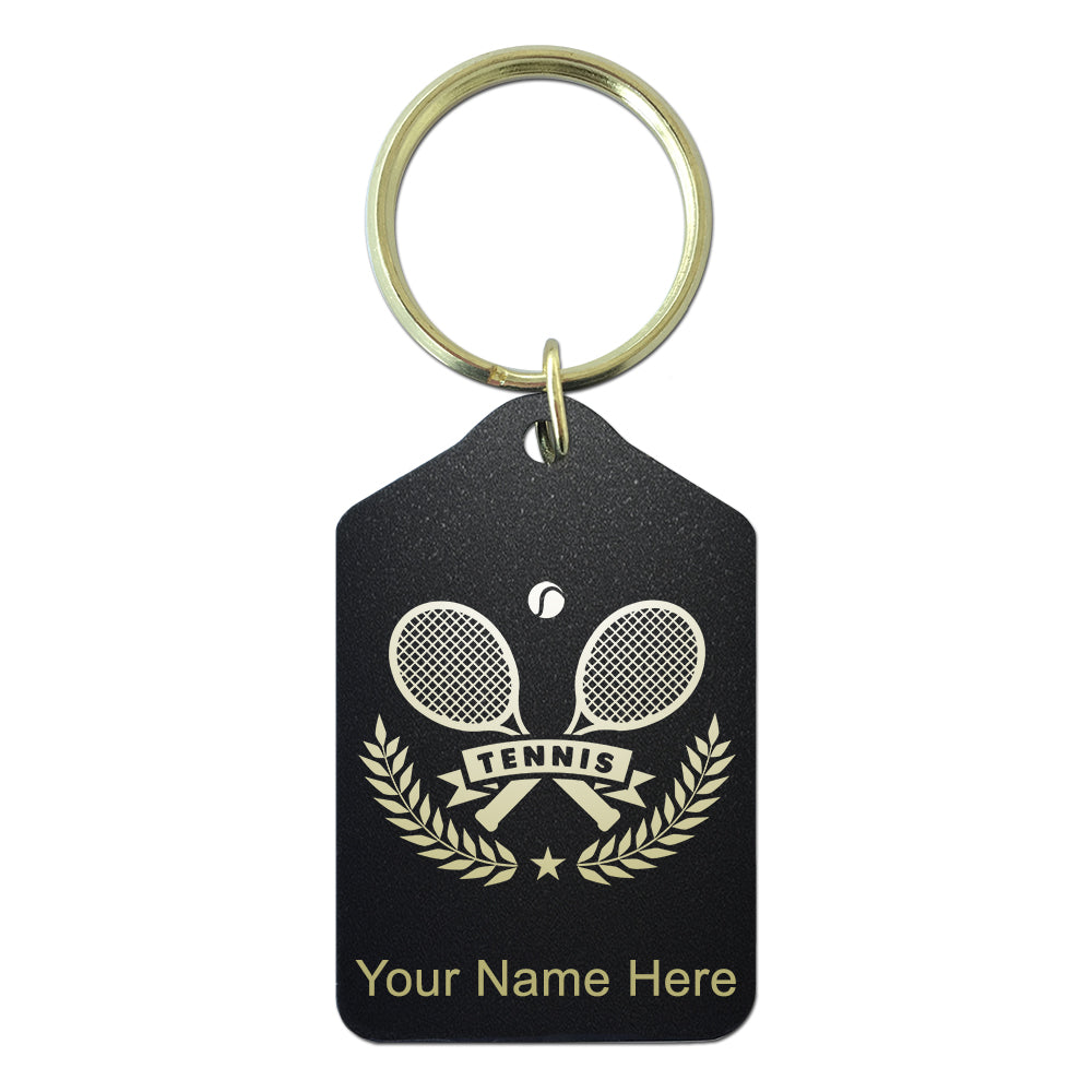 Black Metal Keychain, Tennis Rackets, Personalized Engraving Included