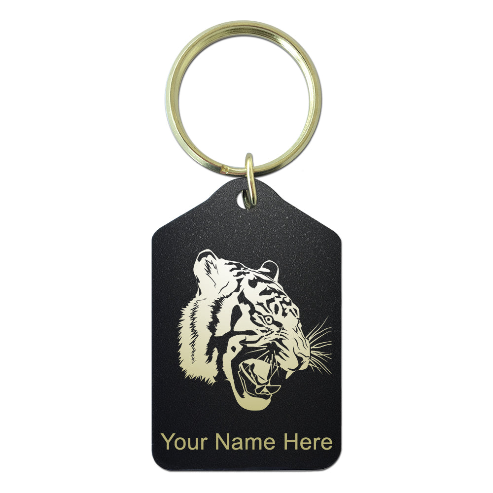 Black Metal Keychain, Tiger Head, Personalized Engraving Included
