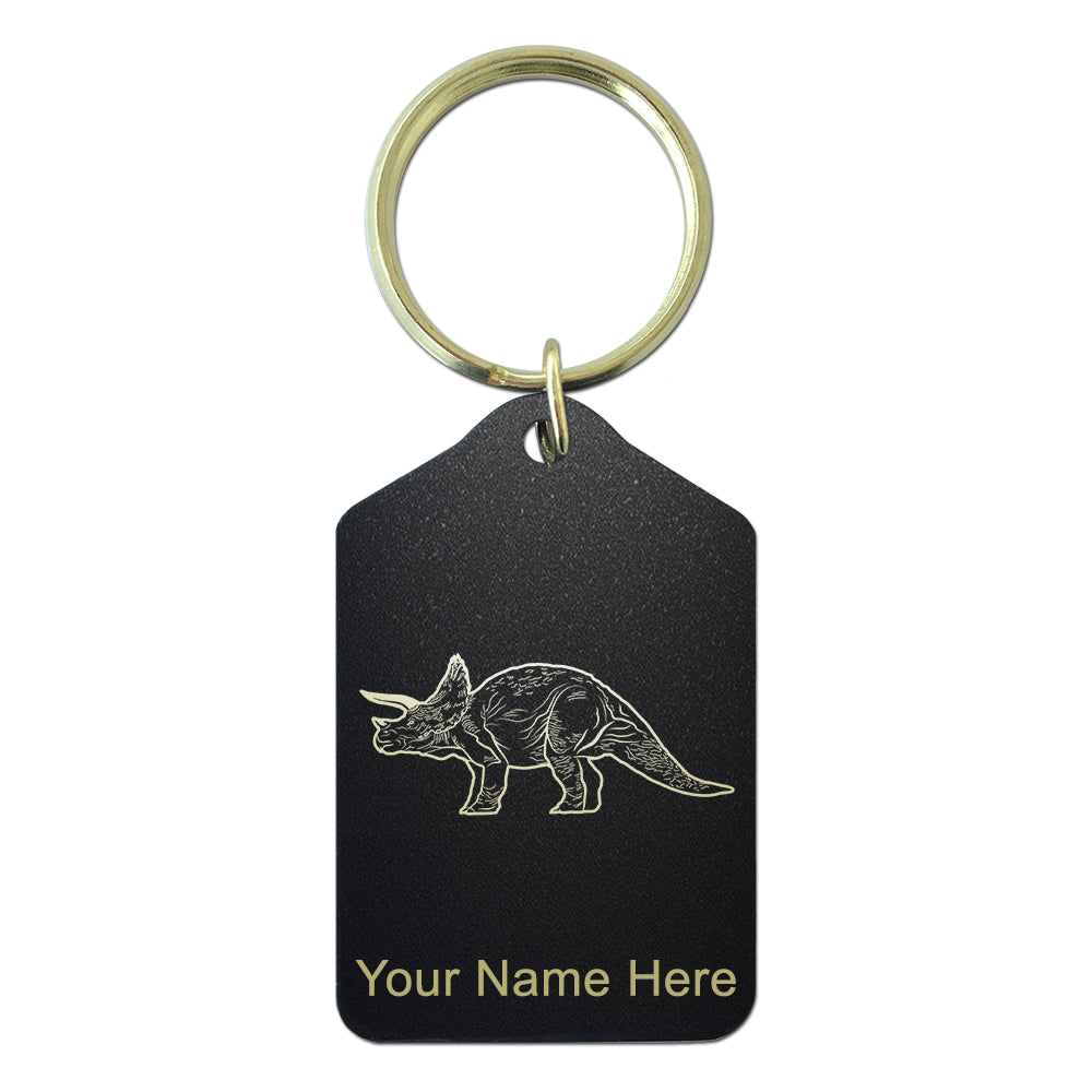 Black Metal Keychain, Triceratops Dinosaur, Personalized Engraving Included