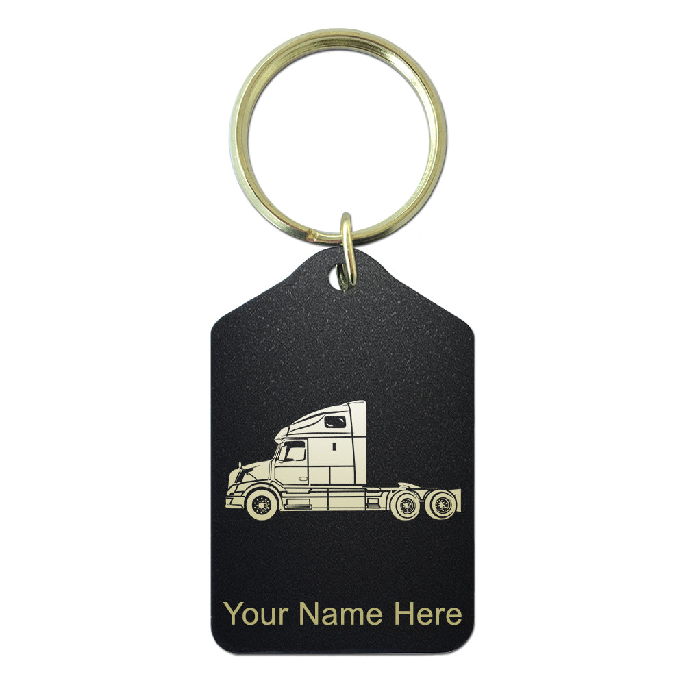 Black Metal Keychain, Truck Cab, Personalized Engraving Included