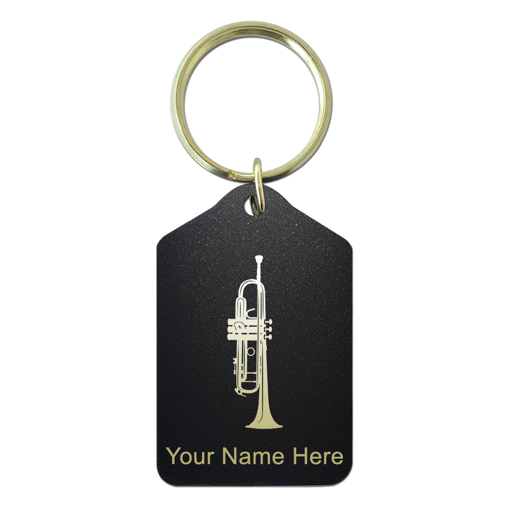 Black Metal Keychain, Trumpet, Personalized Engraving Included