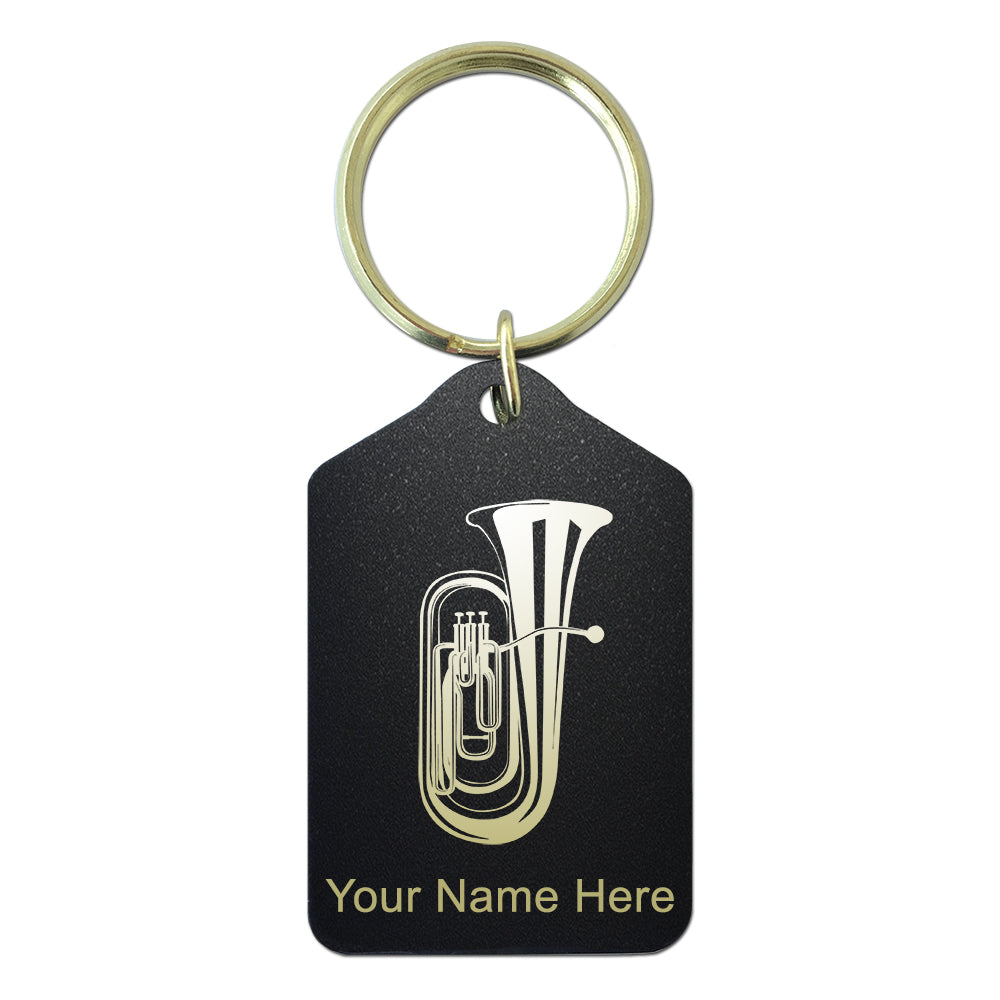 Black Metal Keychain, Tuba, Personalized Engraving Included