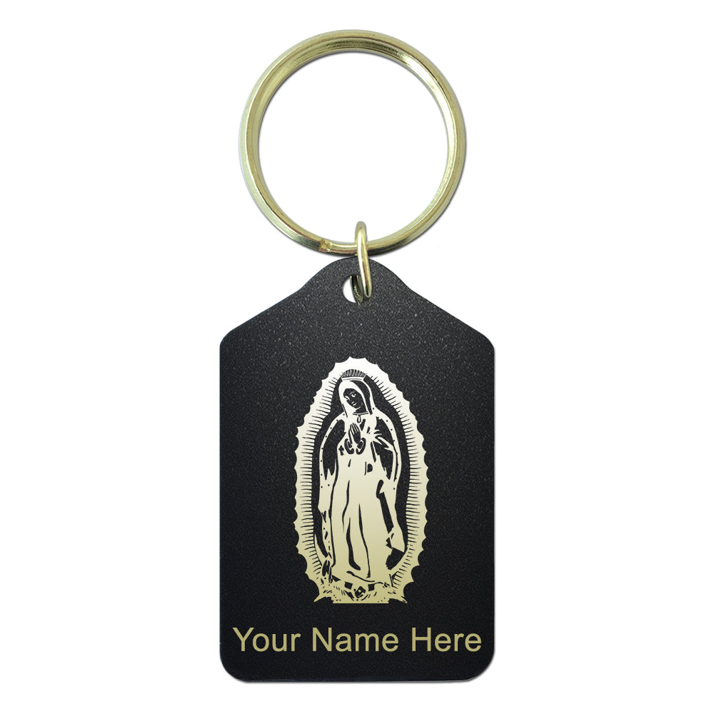 Black Metal Keychain, Virgen de Guadalupe, Personalized Engraving Included