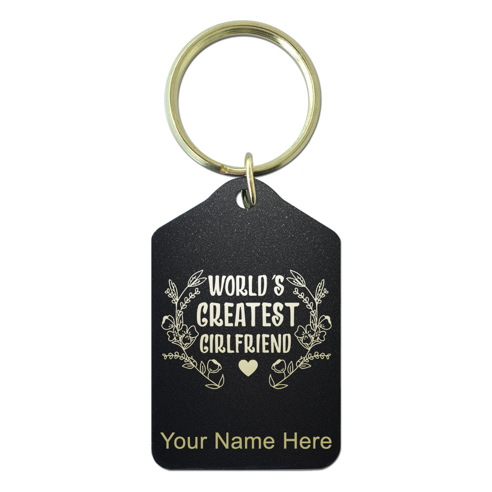 Black Metal Keychain, World's Greatest Girlfriend, Personalized Engraving Included