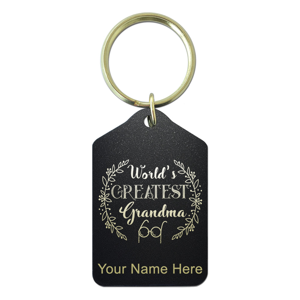 Black Metal Keychain, World's Greatest Grandma, Personalized Engraving Included