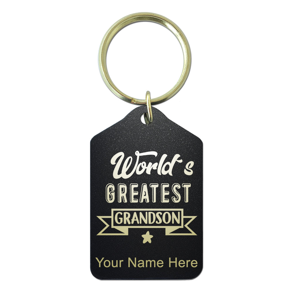 Black Metal Keychain, World's Greatest Grandson, Personalized Engraving Included