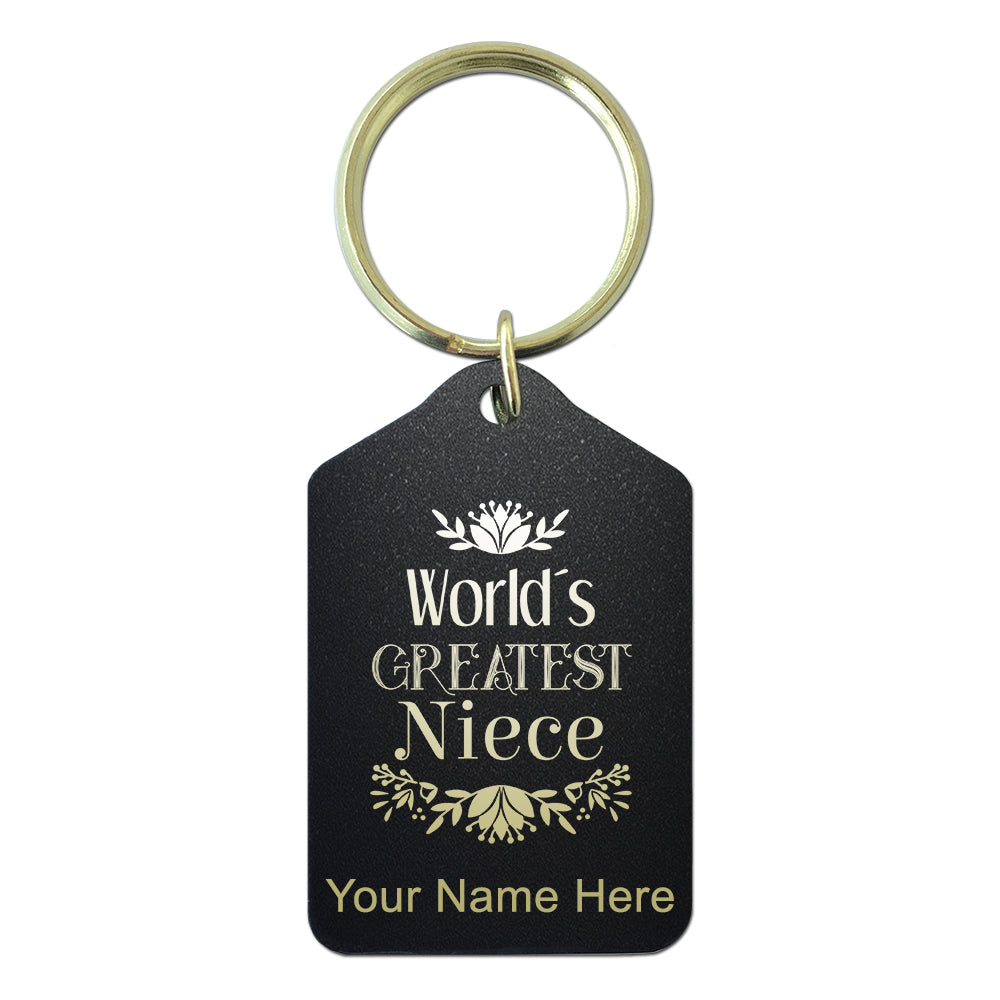 Black Metal Keychain, World's Greatest Niece, Personalized Engraving Included