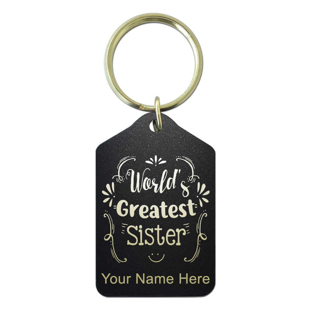 Black Metal Keychain, World's Greatest Sister, Personalized Engraving Included