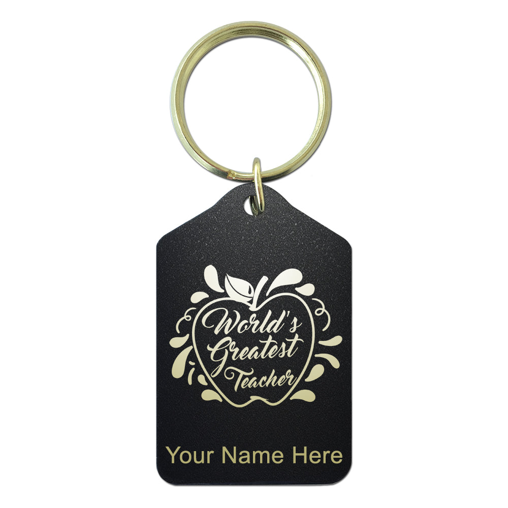 Black Metal Keychain, World's Greatest Teacher, Personalized Engraving Included