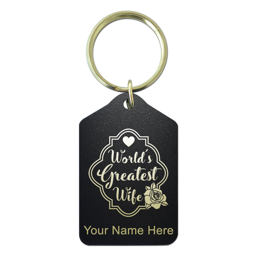 Black Metal Keychain, World's Greatest Wife, Personalized Engraving Included