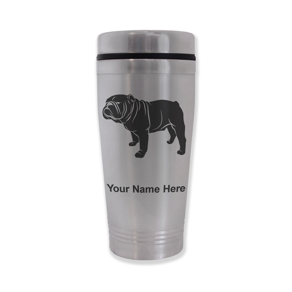 Commuter Travel Mug, Bulldog Dog, Personalized Engraving Included