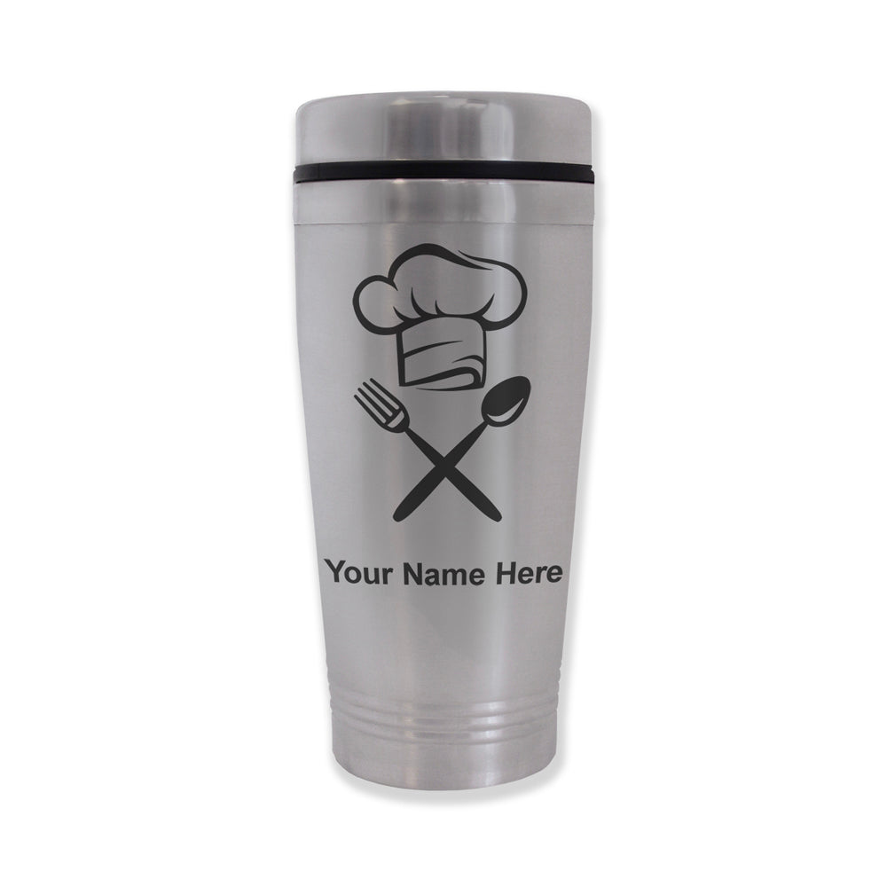 Commuter Travel Mug, Chef Hat, Personalized Engraving Included