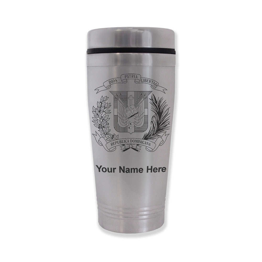 Commuter Travel Mug, Coat of Arms Dominican Republic, Personalized Engraving Included