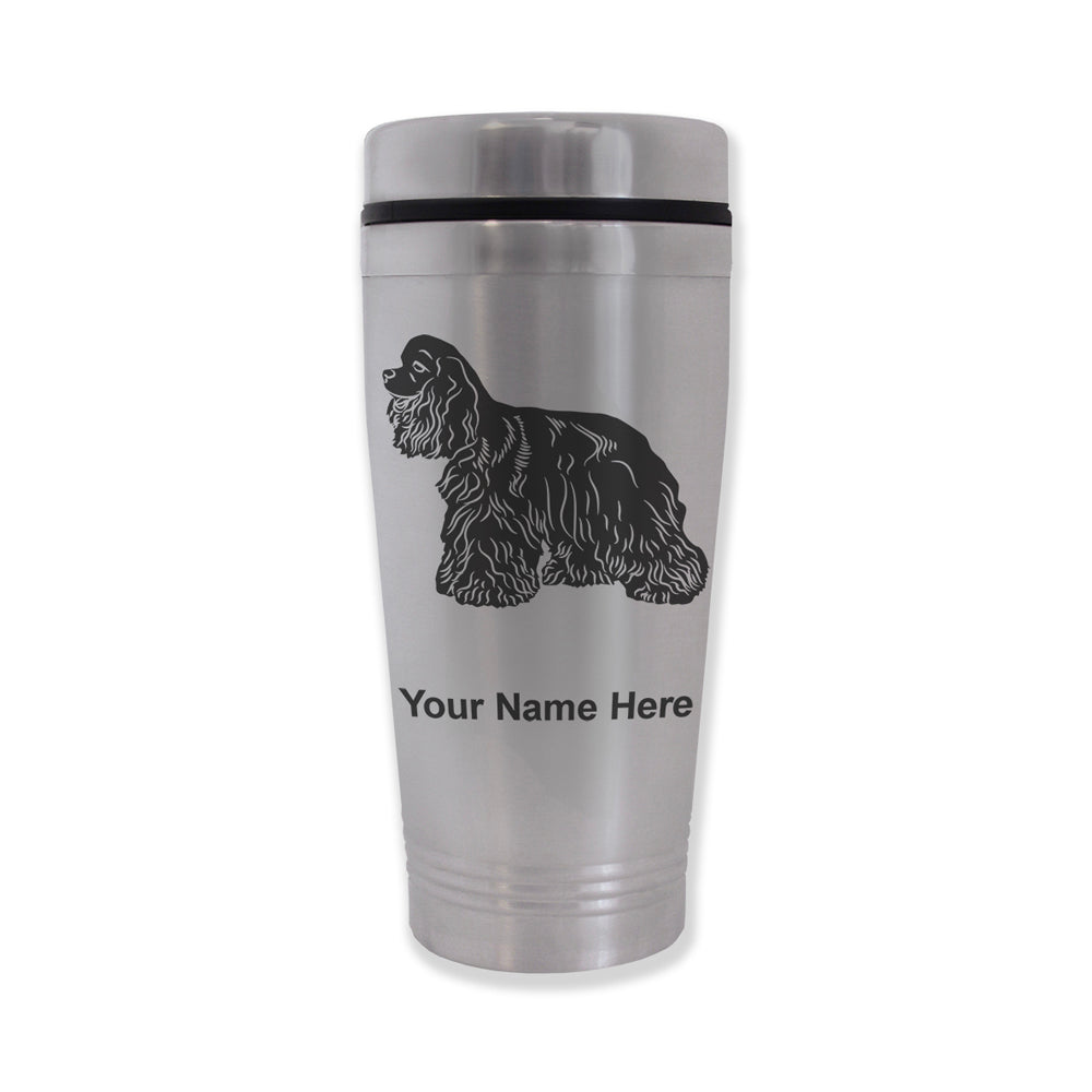 Commuter Travel Mug, Cocker Spaniel Dog, Personalized Engraving Included