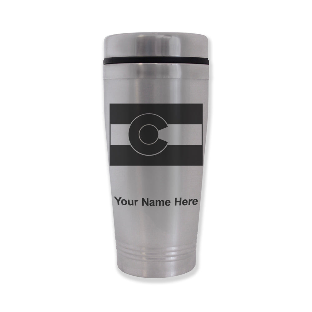 Commuter Travel Mug, Flag of Colorado, Personalized Engraving Included