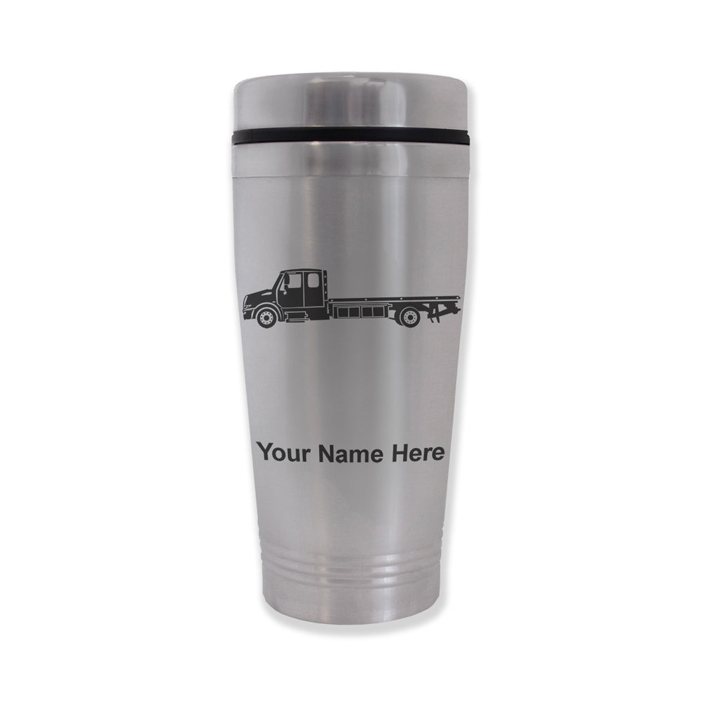 Commuter Travel Mug, Flat Bed Tow Truck, Personalized Engraving Included