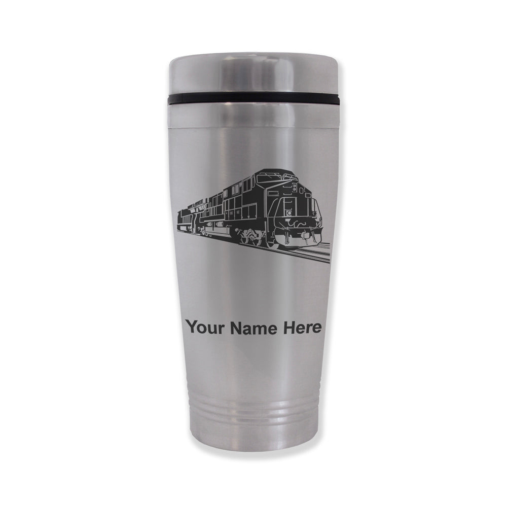 Commuter Travel Mug, Freight Train, Personalized Engraving Included