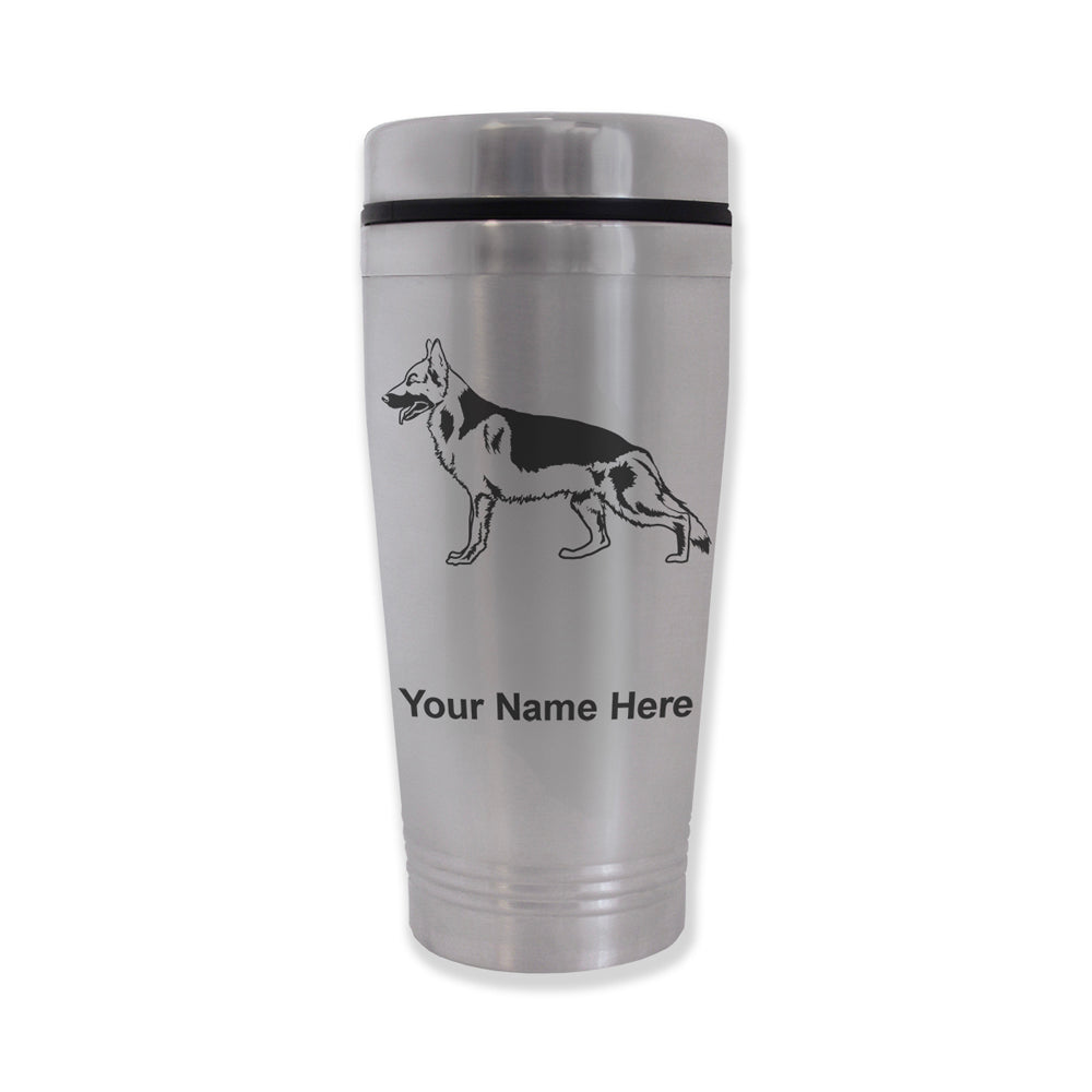 Commuter Travel Mug, German Shepherd Dog, Personalized Engraving Included