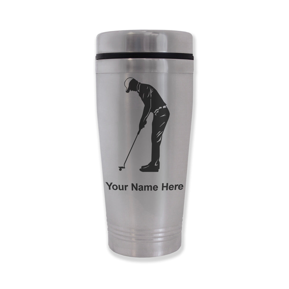 Commuter Travel Mug, Golfer Putting, Personalized Engraving Included