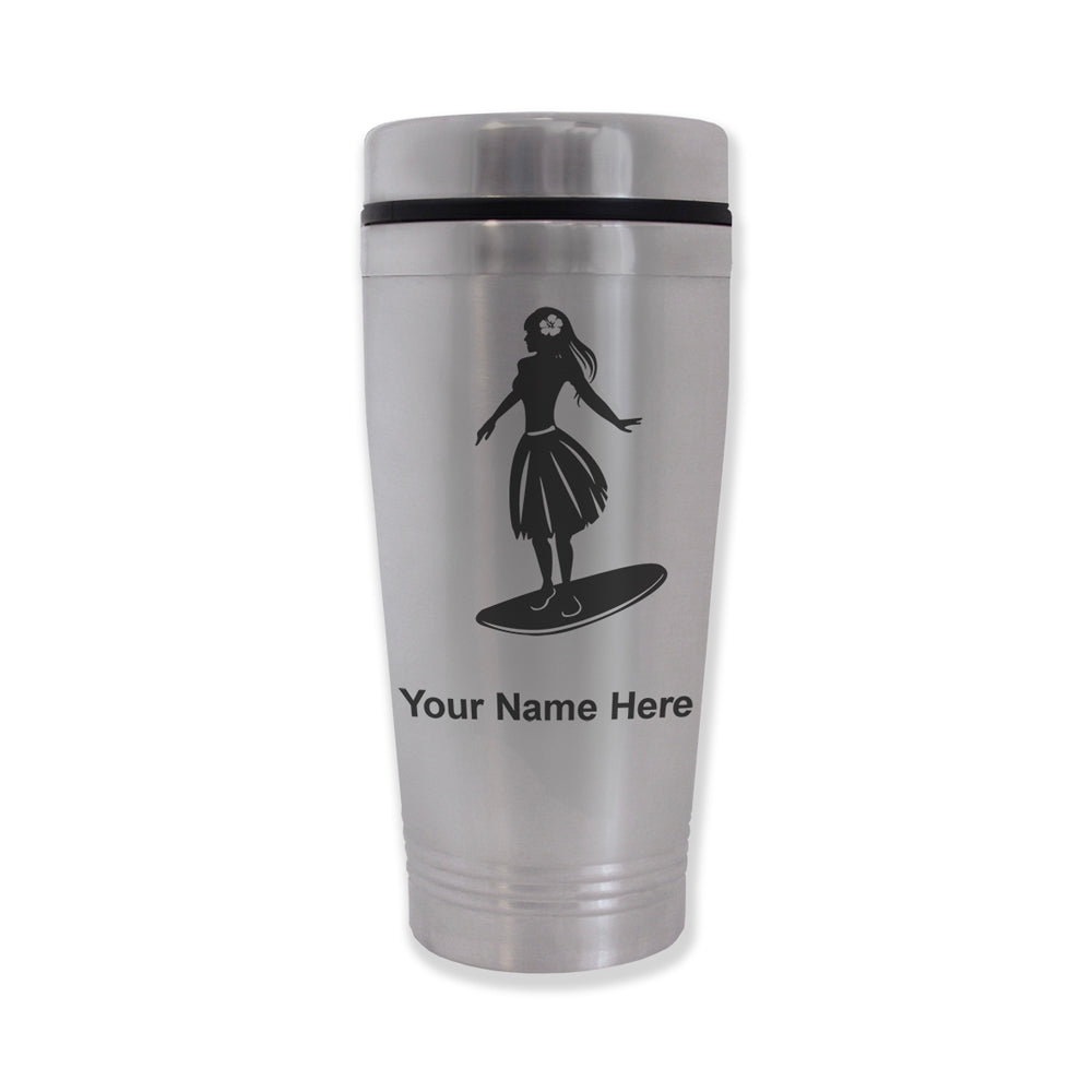 Commuter Travel Mug, Hawaiian Surfer Girl, Personalized Engraving Included
